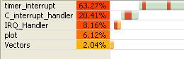 基于跟踪数据,DS-5 调试器还生成时间表图表,所含信息可帮助开发人员迅速理解其软件在目标上的执行方式以及哪些功能最占用 CPU。通过提供不同的缩放级别,该时间表可基于每个时间单位的指令数显示以其最高分辨率显示热点地图,并且提供按每组指令的典型延迟时间以不同颜色编码的每指令显示。